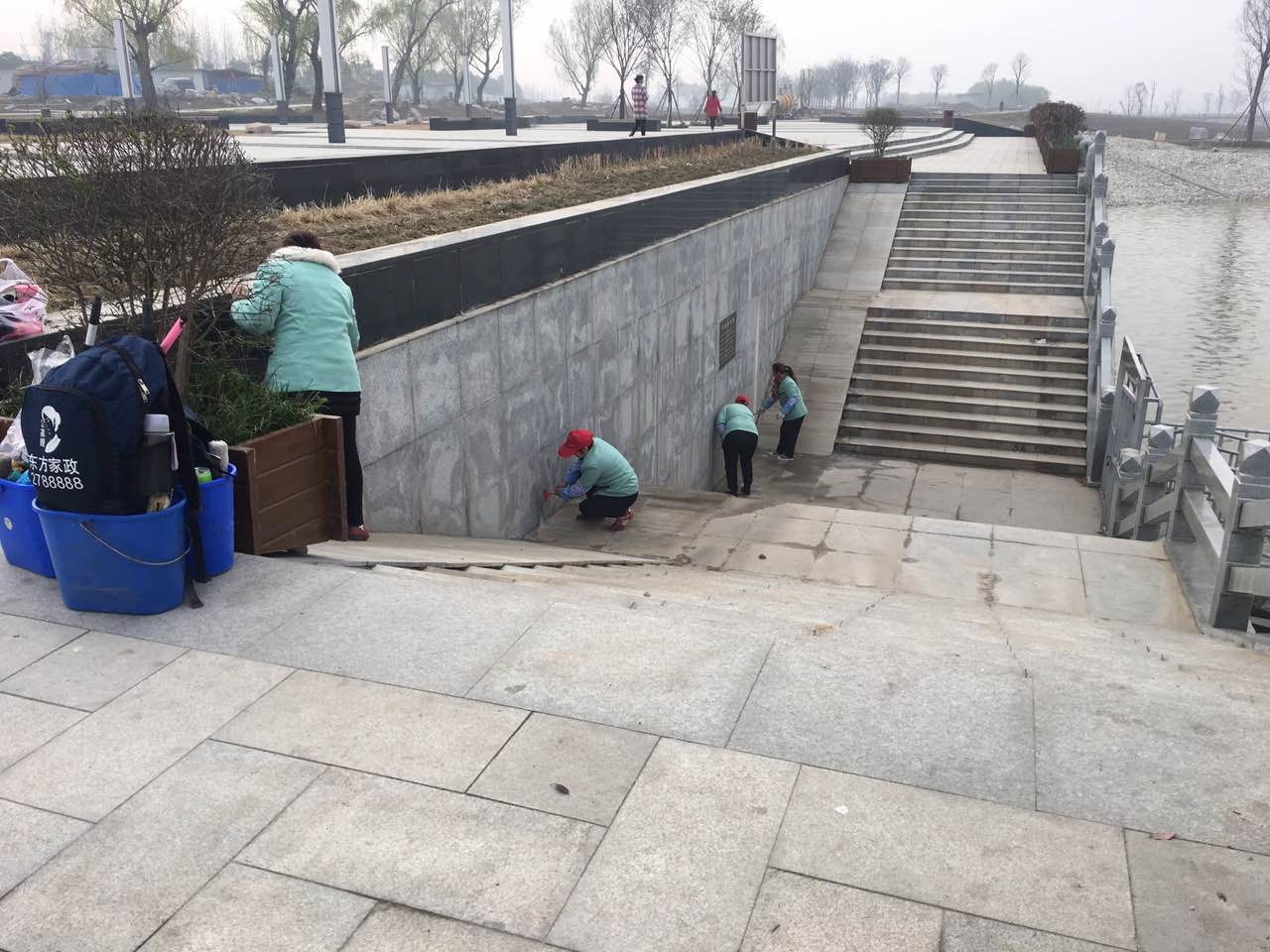 东方家政保洁队在汉中市滨江新区日常清洁工作。